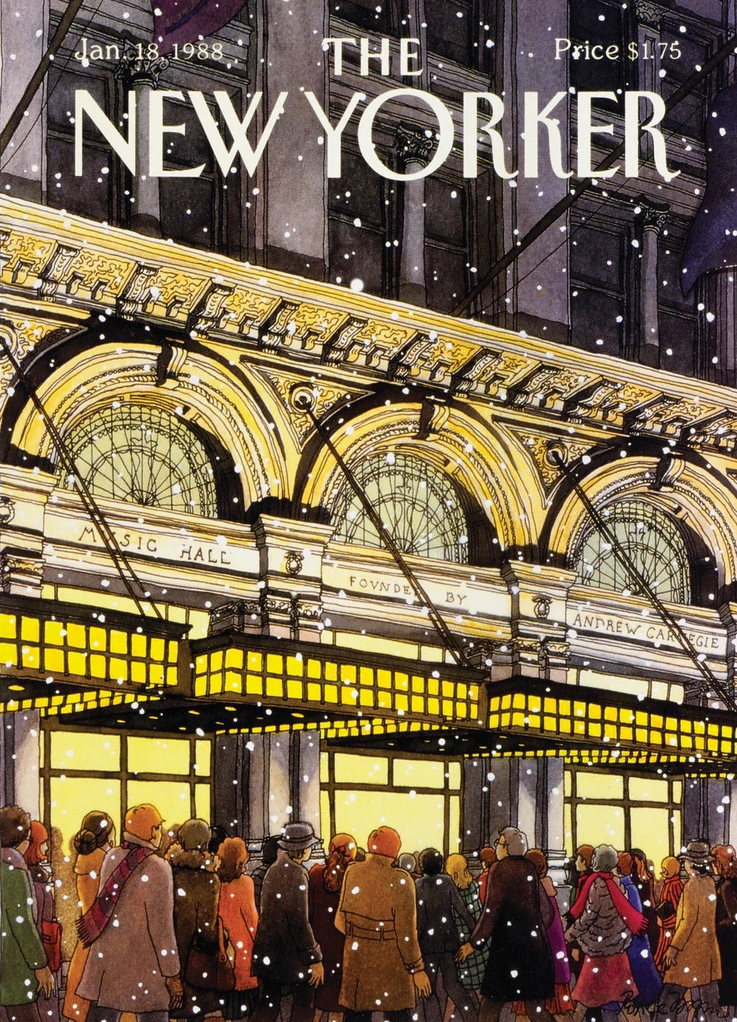 Inspired by the 1988 New Yorker cover, this 1000-piece puzzle highlights the warm lights and classic New Yorker charm of Carnegie Hall on a snowy winter evening.