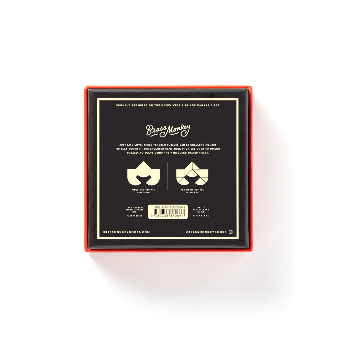 Just like love, this tangram puzzle by Brass Monkey is kind of complicated...but totally worth it. The enclosed game booklet provides over fourty-two unique puzzles to solve using the included solid puzzle pieces. A heart is just the beginning.