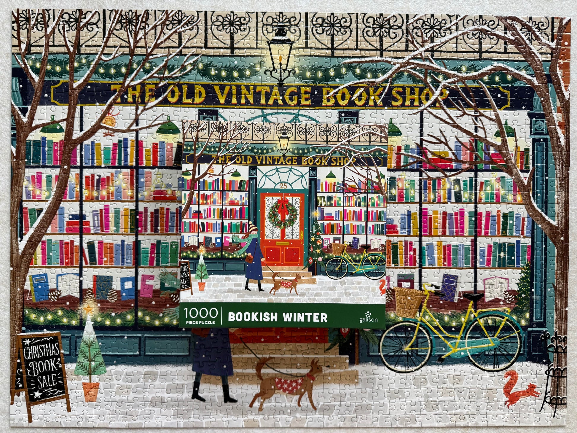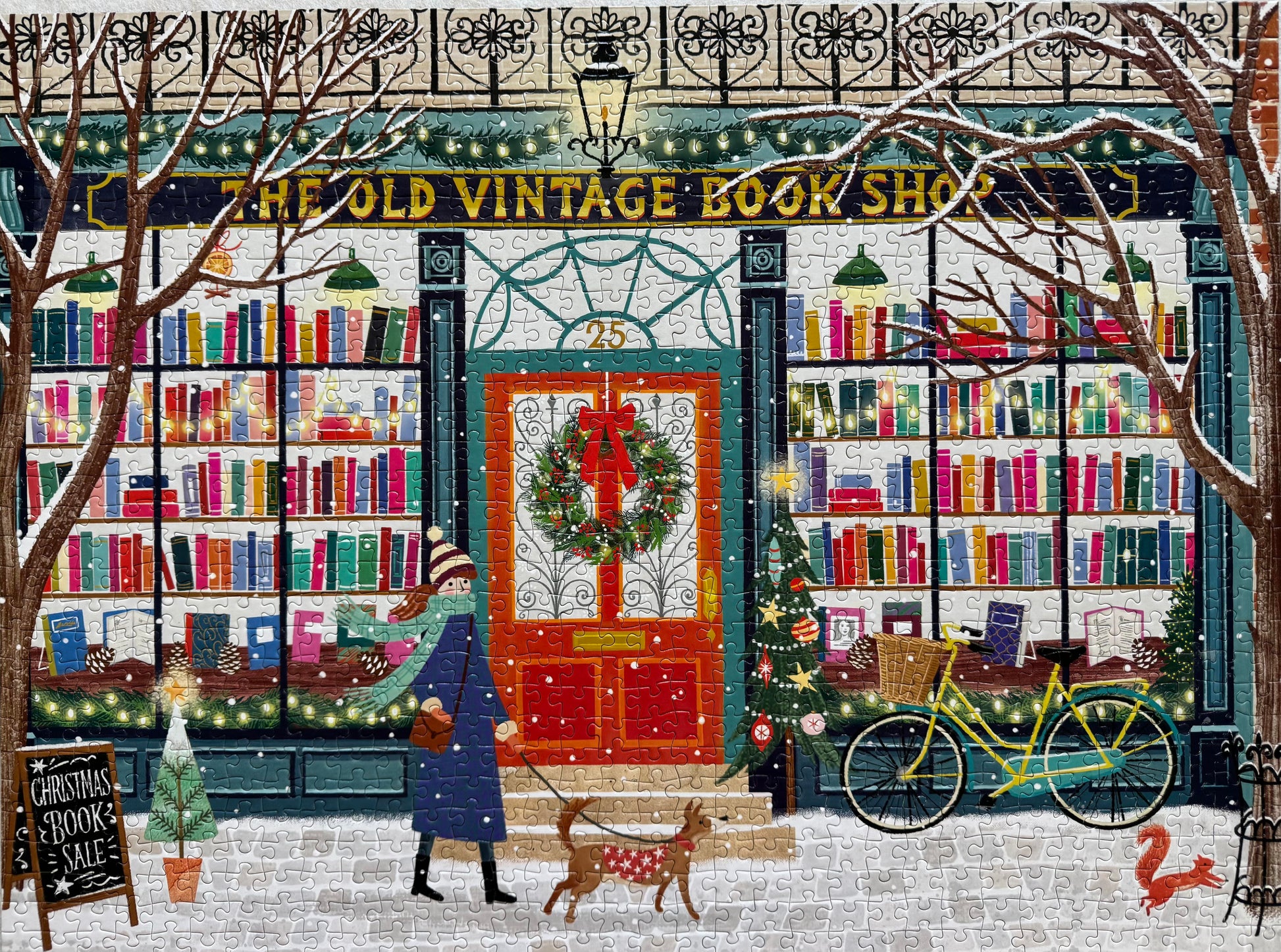 Step into a charming winter wonderland with the Galison Bookish Winter 1000-Piece Puzzle. Featuring a beautifully illustrated vintage bookshop decorated for the holidays, this puzzle is perfect for cozy winter nights, book lovers, and puzzle enthusiasts alike.