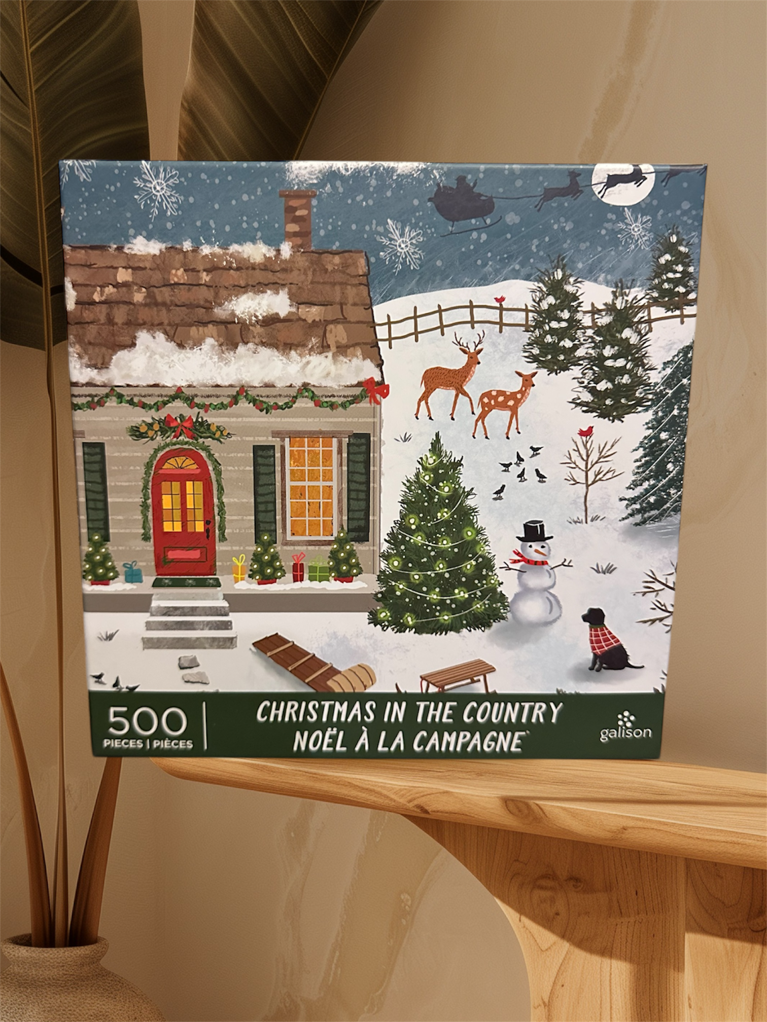 Escape to a peaceful winter wonderland with the Galison Christmas in the Country 500-Piece Puzzle.