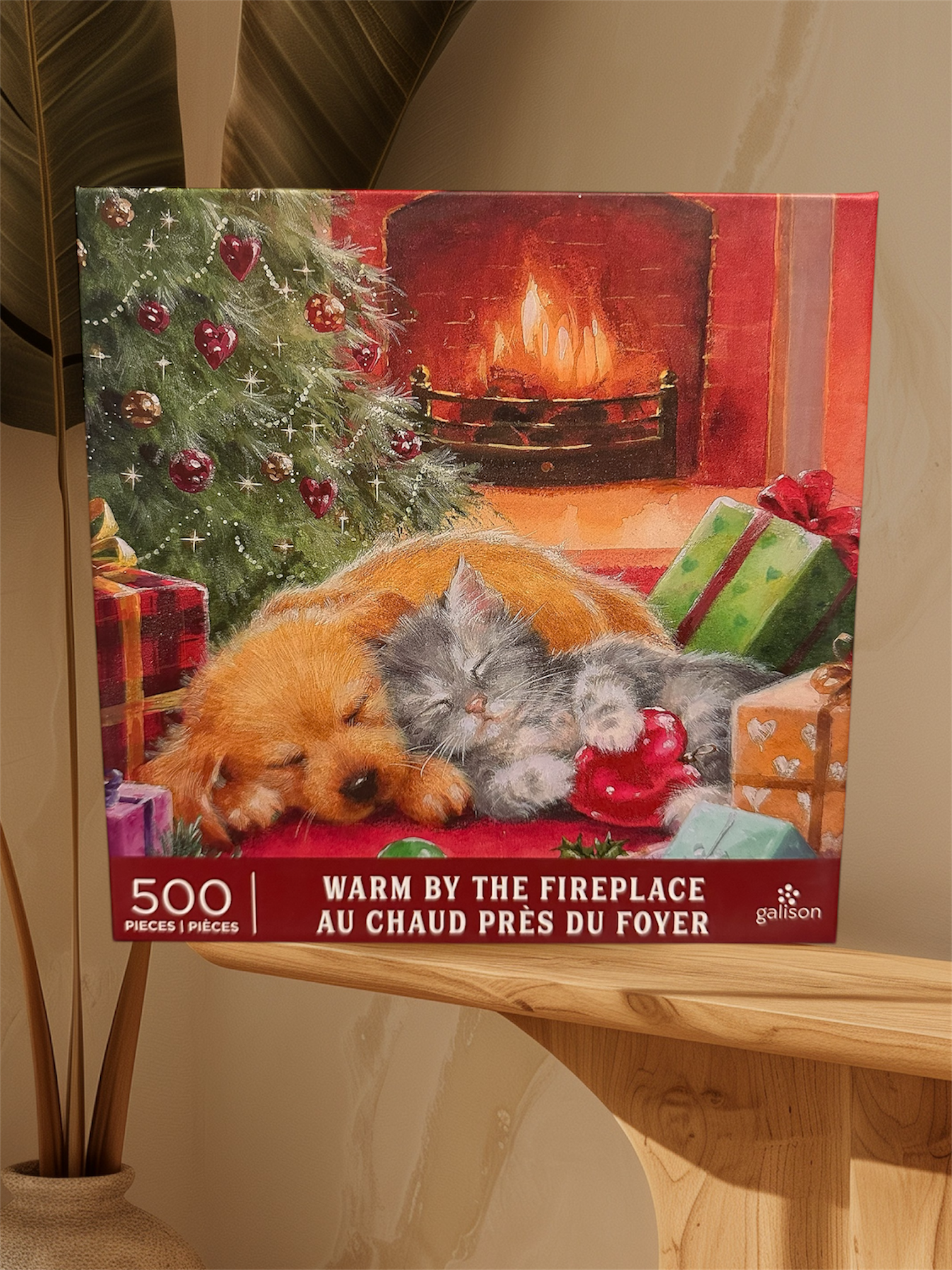 Bring warmth and holiday magic into your home with the Galison Warm by the Fireplace 500-Piece Puzzle.