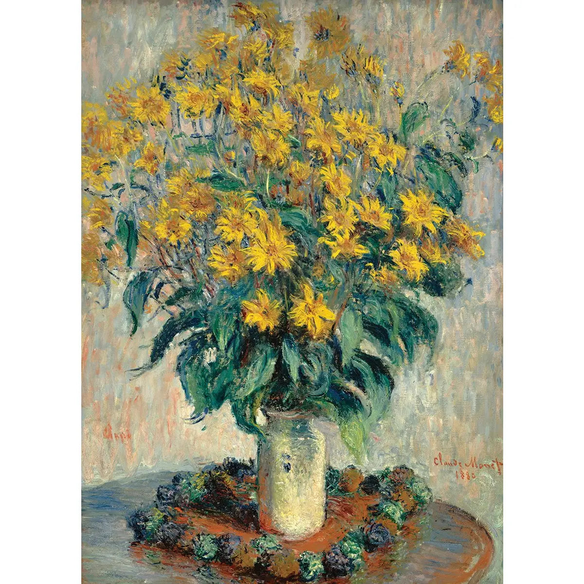 EuroGraphics Jerusalem Artichoke Flowers by Claude Monet 1000-Piece Puzzle. Box size: 10" x 14" x 2.37". Finished Puzzle Size: 19.25" x 26.5". Jerusalem Artichokes is one of the lesser known works by Monet. It was painted in 1880 and can now be found in the Chester Dale Collection of the National Gallery in Washington. Ensuring a snug fit and hours of relaxing enjoyment. Premium Quality: Crafted with premium blueboard and a linen finish for a durable, glare-free experience. Eco-Friendly:Manufactured using recycled and responsibly sourced materials.