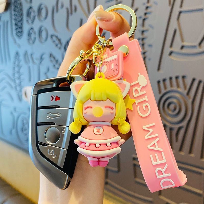 Add a touch of cuteness to your everyday essentials with this Kawaii Dream Girl Keychain. Featuring a pastel-colored doll design with a soft silicone wrist strap and charming details, itโs lightweight, adorable, and easy to attach to keys, bags, or backpacks. Perfect for daily use or as a sweet gift.