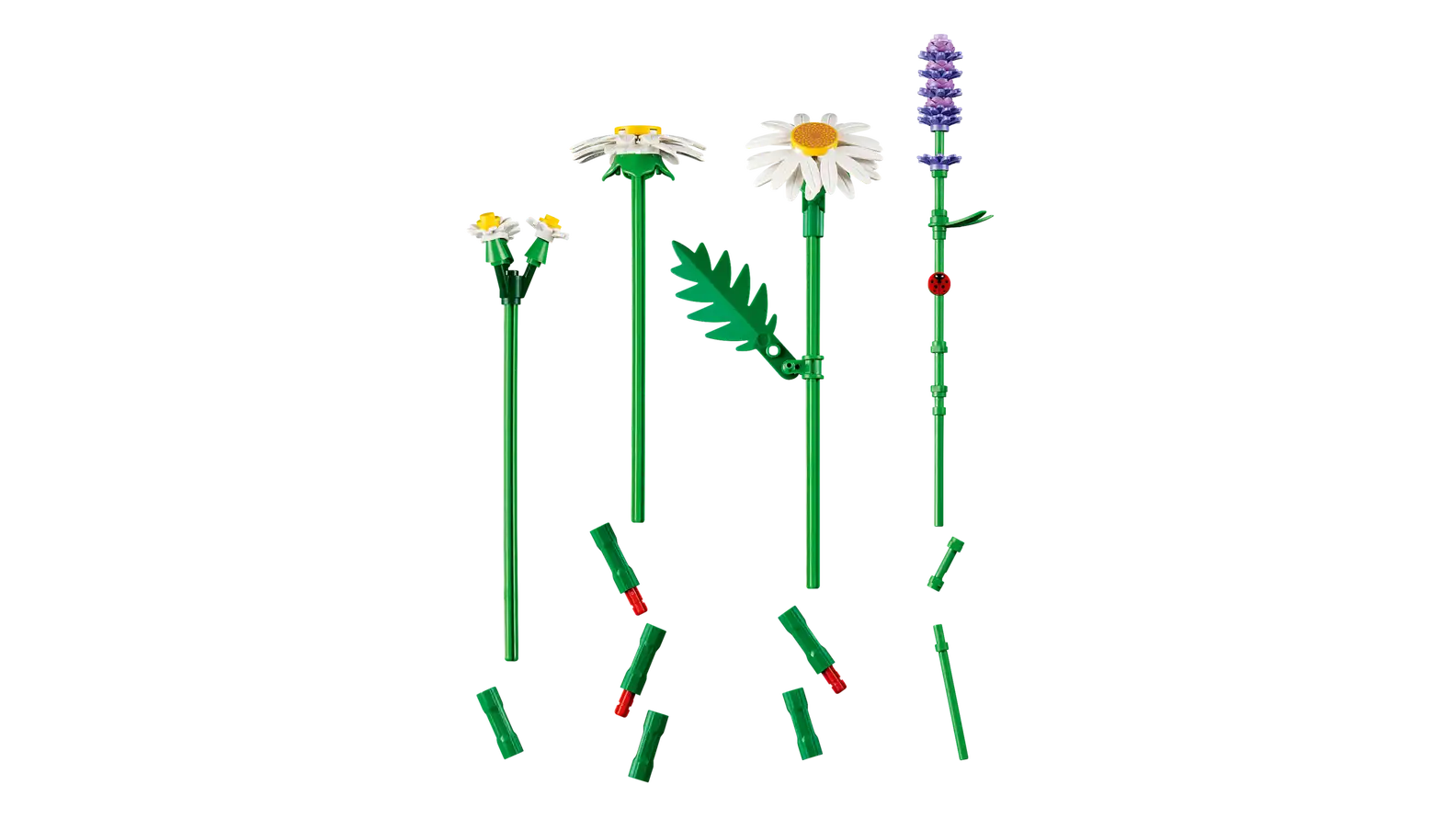 - NATURE DETAILS – The LEGO® daisy flowers are highly detailed and authentic and, if you look closely, you’ll spot a small ladybug on one of the lavender stems
