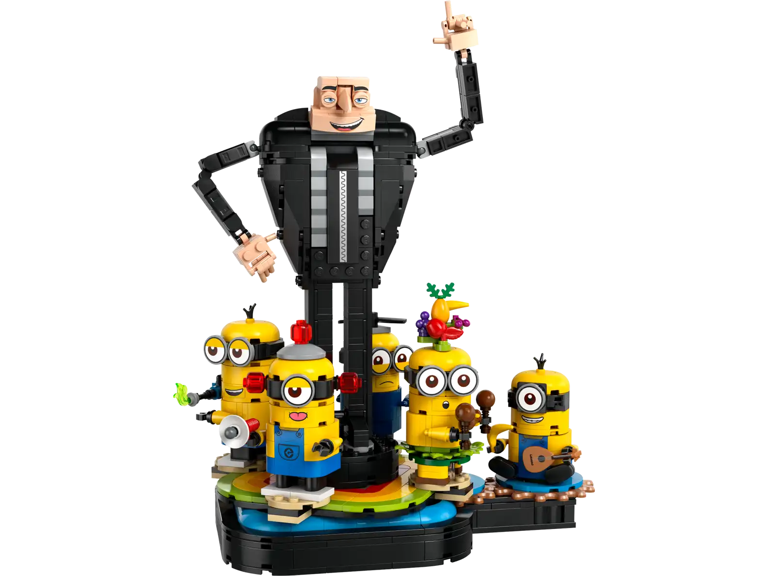 - Gru figure and dancing Minions – LEGO® Despicable Me 4 Brick-Built Gru and Minions is a buildable, play-and-display toy for boys and girls aged 9+ who are fans of the Minions’ movies