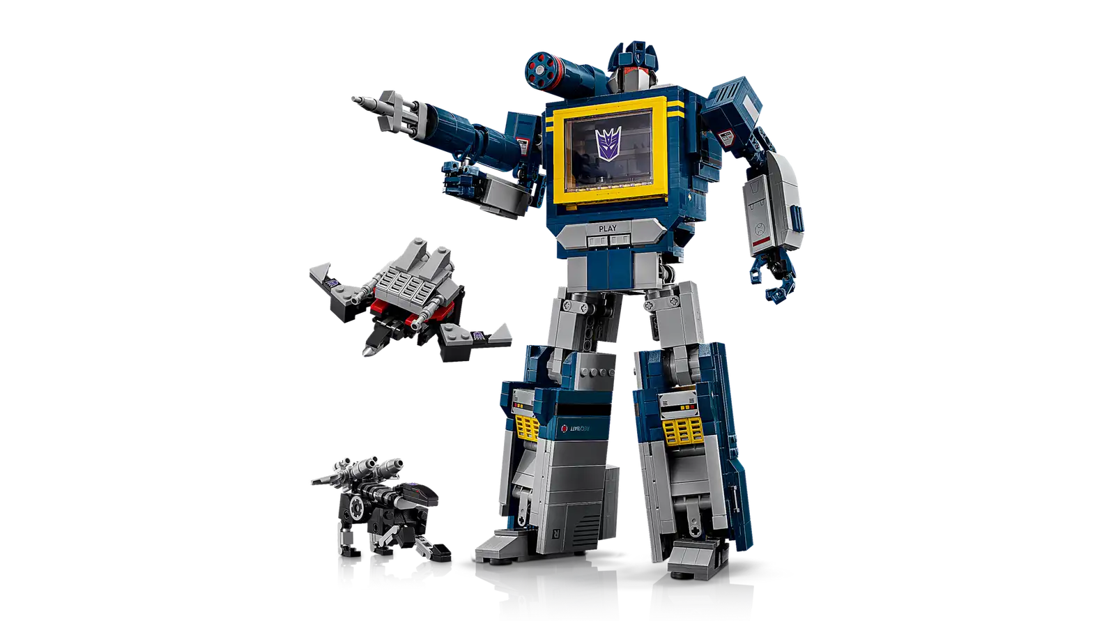 - What’s in the box? – Everything you need to craft a detailed LEGO® Icons Transformers: Soundwave figure with rocket pod, laser blaster and dart accessories, plus Ravage and Laserbeak figures