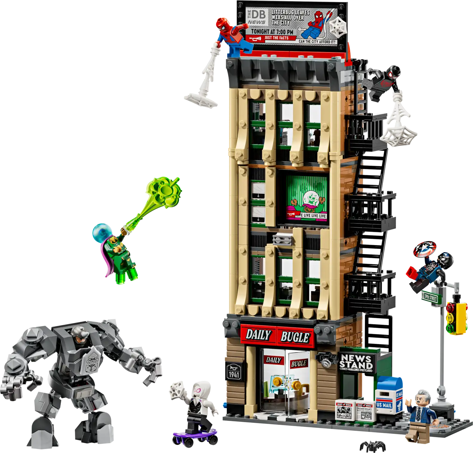 - DAILY BUGLE BUILDING TOY – Explore Spider-Man vs. Mysterio: The Daily Bugle (76342), a 4-level building packed to the rooftop with LEGO® ǀ Marvel minifigures and Super Hero action