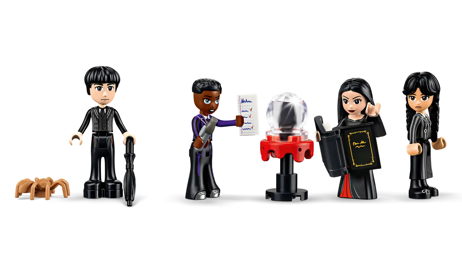 - 4 LEGO® Wednesday minidolls – This playset features Wednesday Addams, Morticia Addams, Bianca Barclay and Lurch minidoll figures, plus lots of accessories to create stories