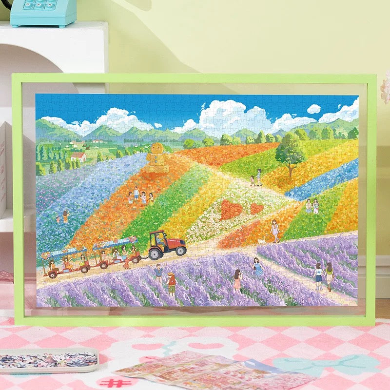 A beautifully illustrated puzzle capturing the vibrant flower fields of Furano, where rolling hills are painted with colorful blooms under an open sky. Soft brushstrokes, lively details, and a sense of open space create a calming yet uplifting puzzling experience, inviting you to wander through the landscape piece by piece. Perfect for lovers of nature scenes, travel-inspired illustrations, or anyone who enjoys peaceful, scenic puzzle time.