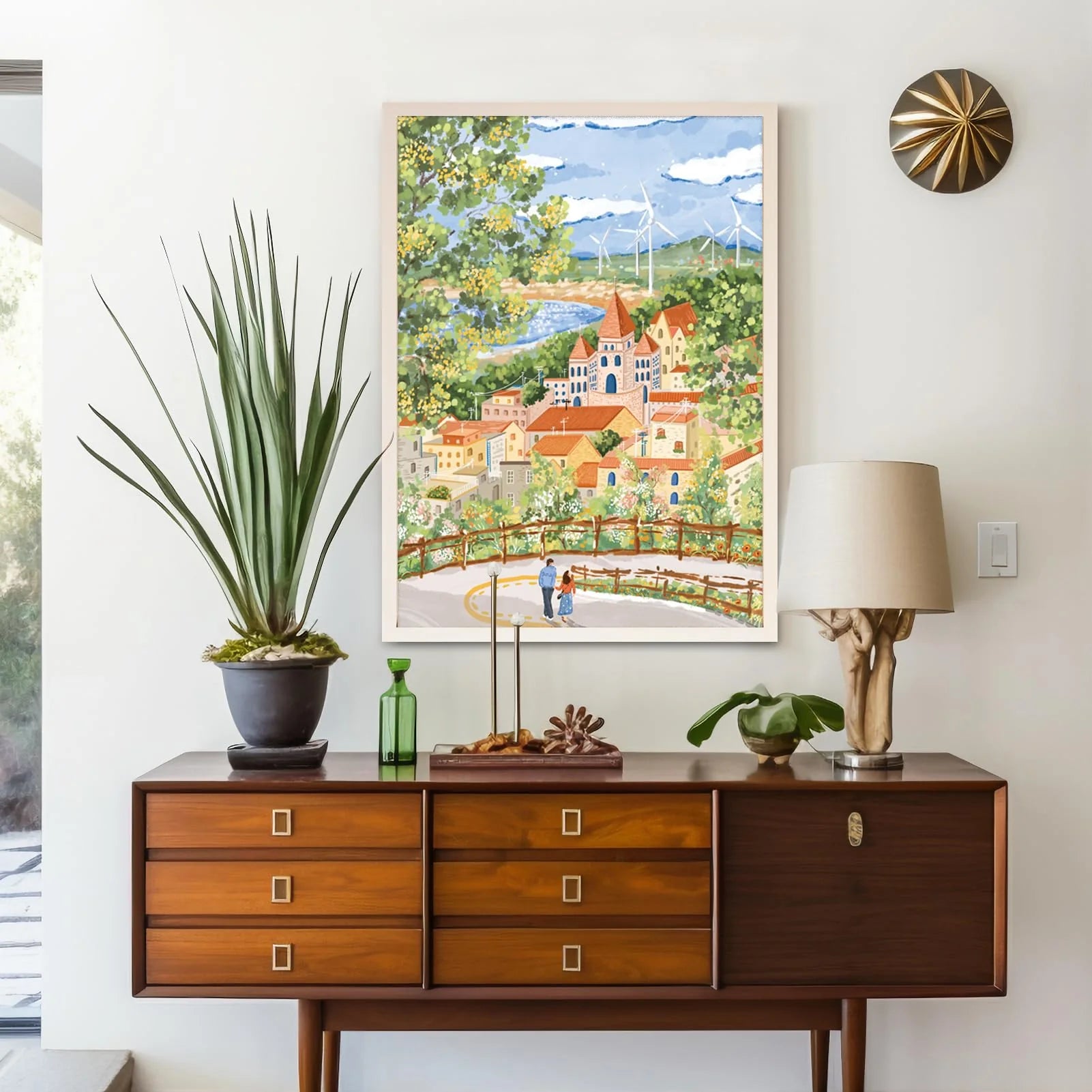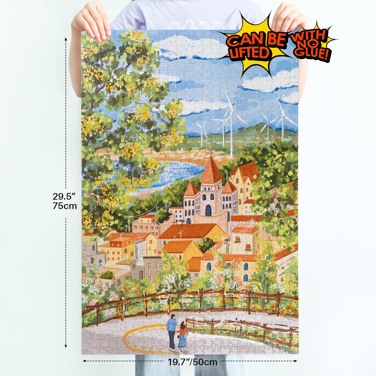 A peaceful illustrated puzzle capturing a quiet walk through a sunlit hillside town. Soft brushstrokes, warm rooftops, and lush greenery create a calm and refreshing scene—perfect for slowing down, relaxing your mind, and enjoying a gentle puzzling moment. Ideal for nature lovers, travel dreamers, and anyone who enjoys a soothing, scenic puzzle experience.