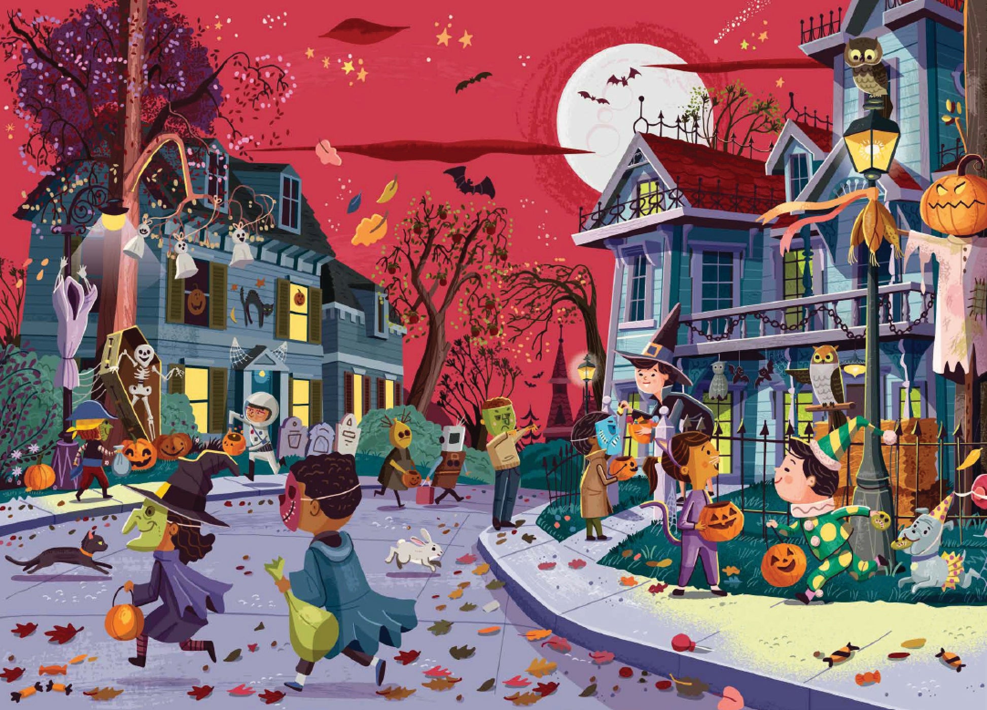 Celebrate the spookiest season with the 500-piece jigsaw puzzle illustrated by Greg Paprocki, the creator of Gibbs Smith's wildly popular Baby Lit alphabet series. Featuring a festive trick-or-treating scene, this playful puzzle is perfect for all ages. Gather around a table with family or friends or piece it together by yourself!